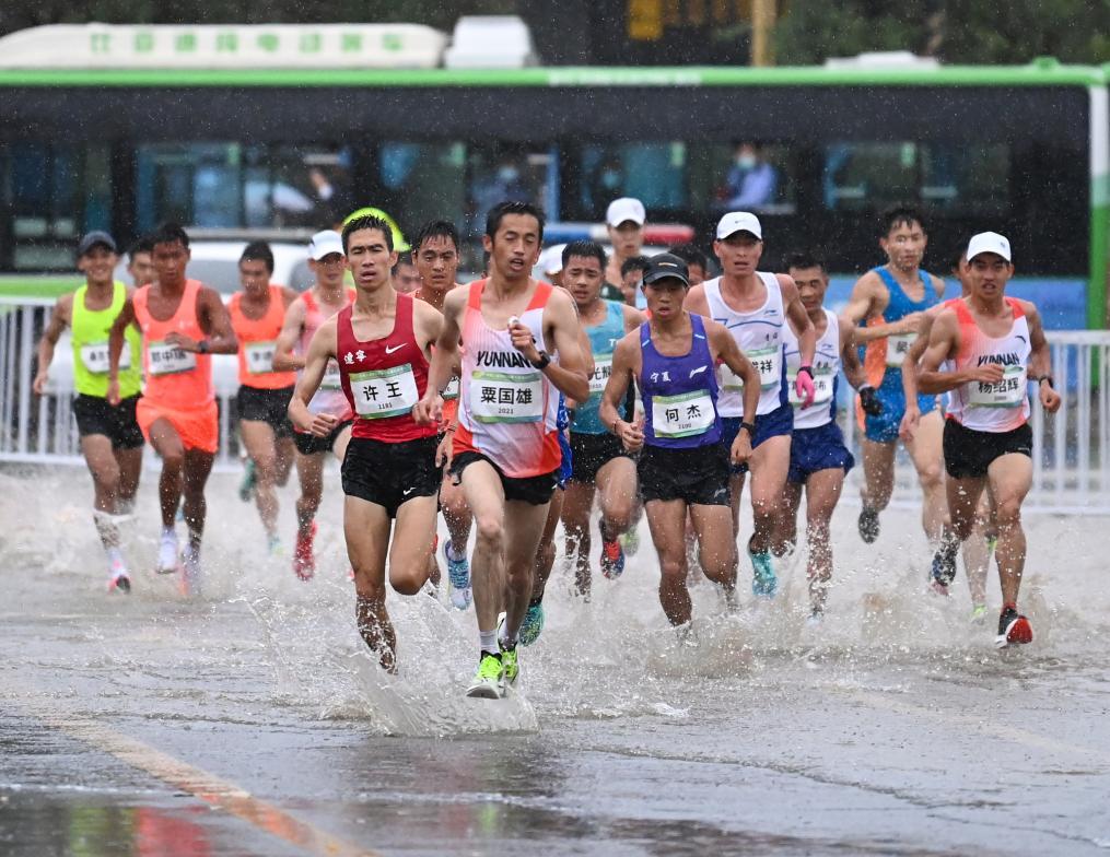2021年9月26日,何杰在第十四届全运会田径项目男子马拉松比赛中。新华社记者 宋彦桦 摄十五运会赛前备战,何杰承受了常人难以理解的孤独和痛苦,两个月跑了2000公里。全运会比赛最后几公里,他几乎是以拼命的姿态在奔跑。从“赤脚少年”到国家队陪练,再到成为中国马拉松纪录保持者,无论跑到多远的地方,何杰都不忘宣传家乡,“要让大家认识宁夏的运动员”,“满心都想为家乡做贡献”。