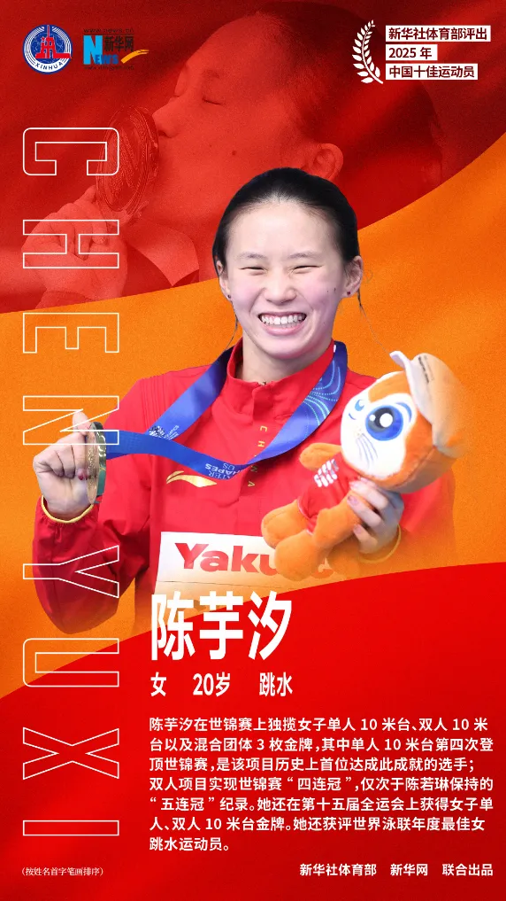 新华社体育部评出2025年中国十佳运动员如下(按姓名首字笔画排序):