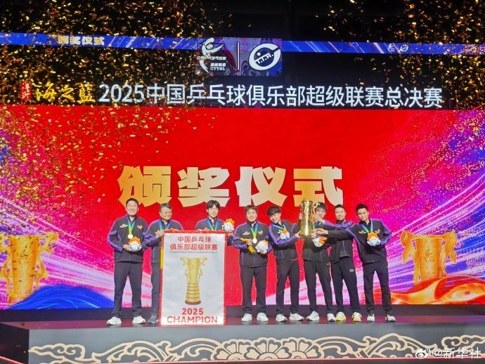 12月28日晚,2025中国乒乓球俱乐部超级联赛总决赛在南京青奥体育公园体育馆落下帷幕。在男子团体决赛中,由王楚钦、梁靖崑、林昀儒组成的山东魏桥队发挥出色,以3比0战胜黄石华新,强势卫冕。