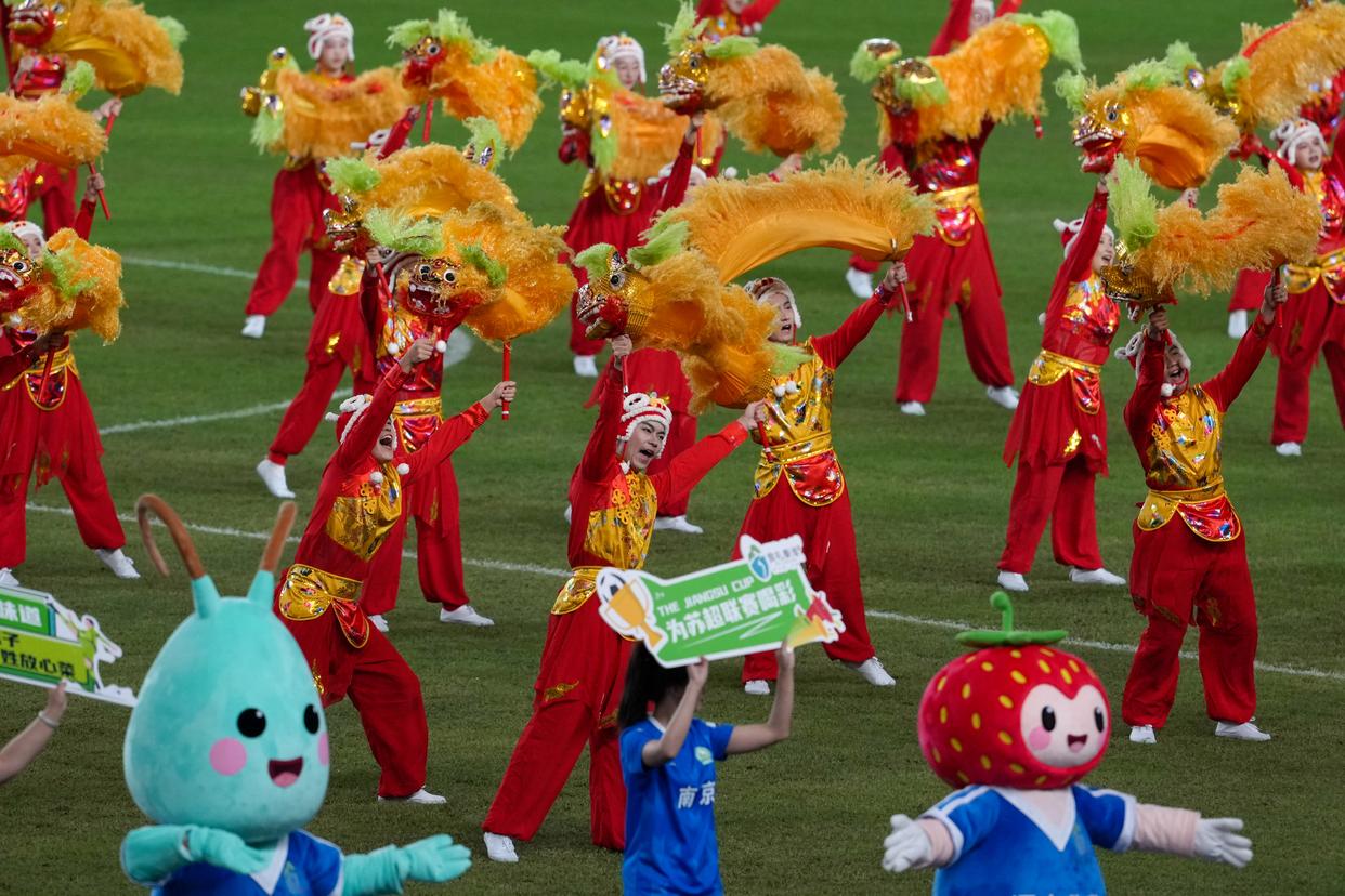 ↑10月18日,演员在江苏南京举行的2025江苏省城市足球联赛(“苏超”)南京队与泰州队的半决赛中场休息时表演。新华社记者 李博 摄校园之内,传承有道