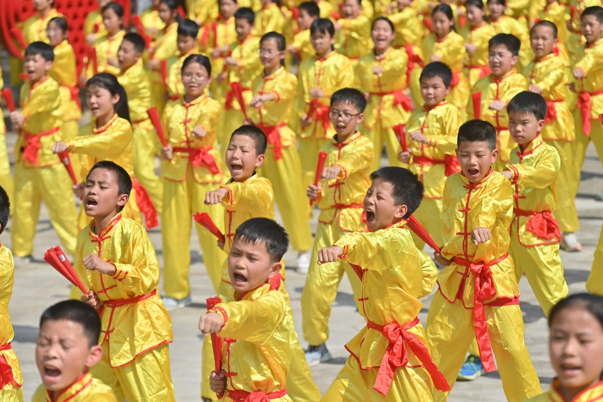 ↑5月13日,学生在广西蒙山县文圩镇文圩中心小学练习功夫扇。新华社记者 黄孝邦 摄走向世界,文化共鸣