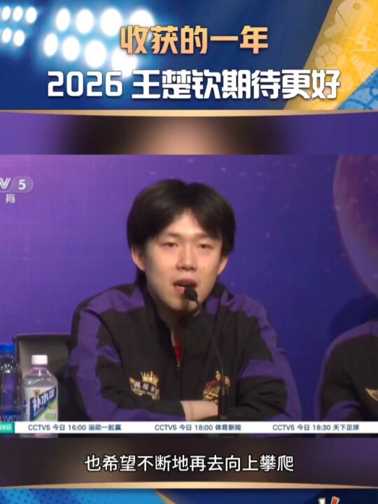 2025年,王楚钦共收获15个冠军头衔,包括自己的第一个三大赛单打冠军。“这一年让自己焕然一新。”对于即将到来的2026年,王楚钦充满期待:“自己去休整一阵子后,有信心去面对一个全新的2026。”今年是王楚钦升入国家队十周年,对此他感慨良多:“我希望不断向上攀爬,不跟任何人作比较,只和昨天的自己作比较。”