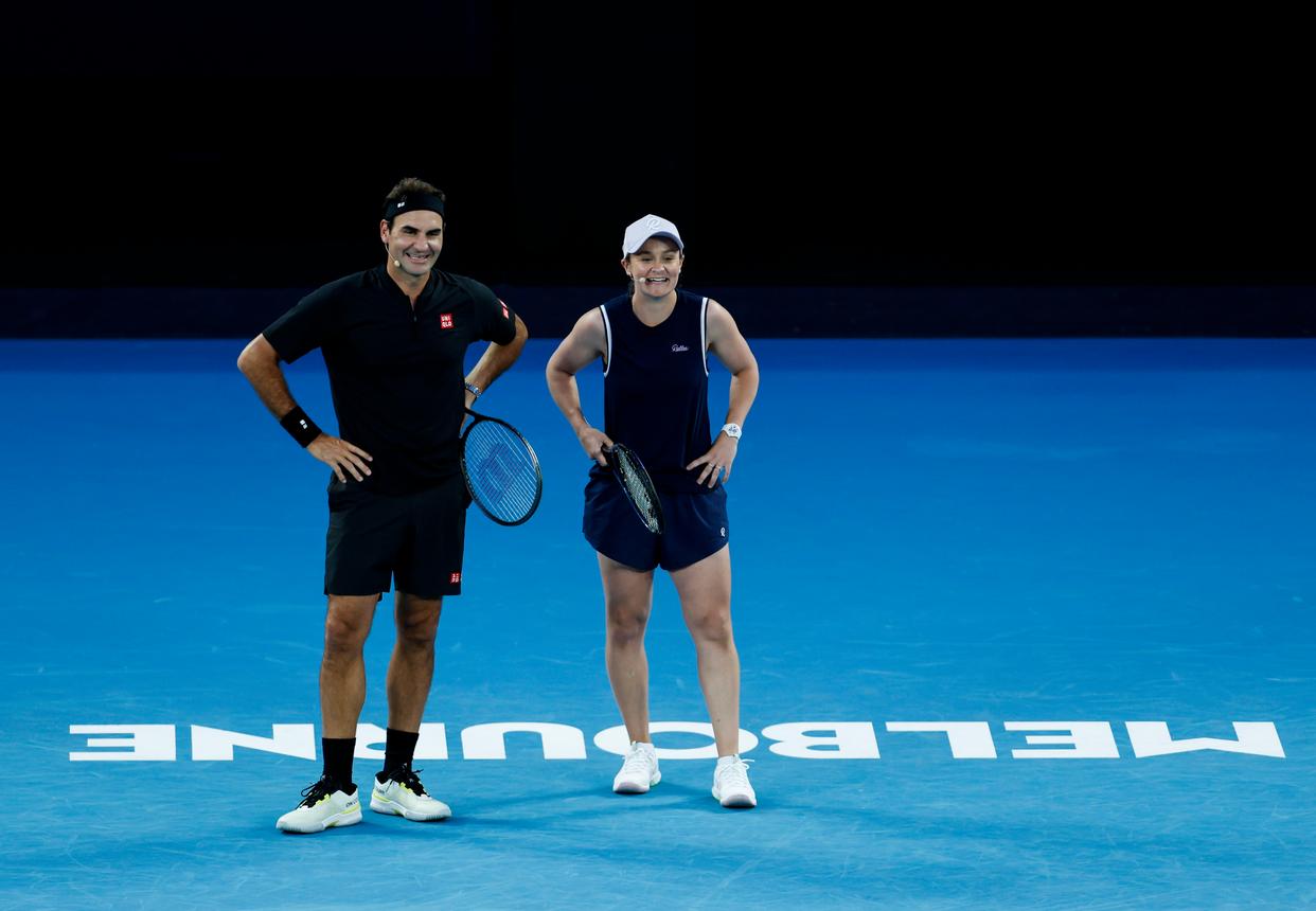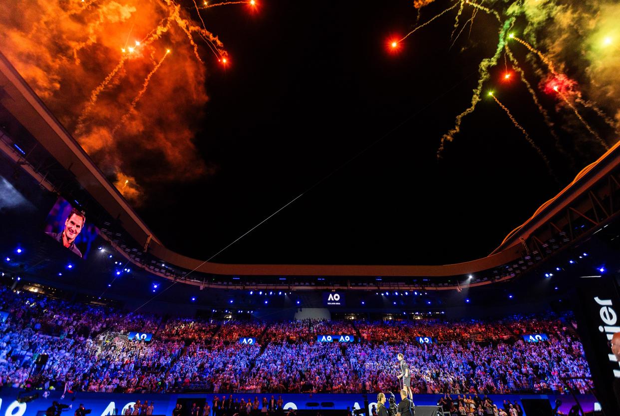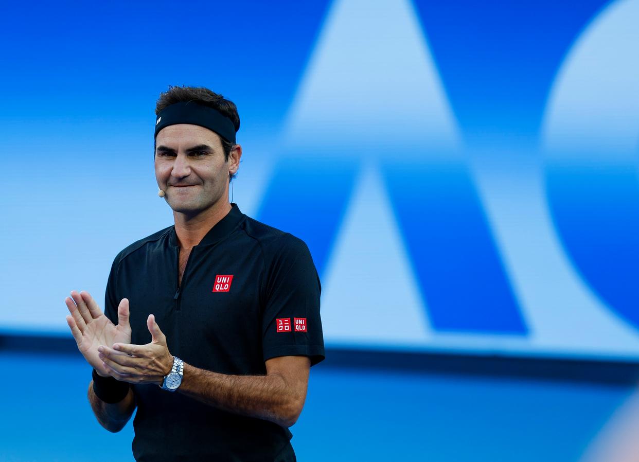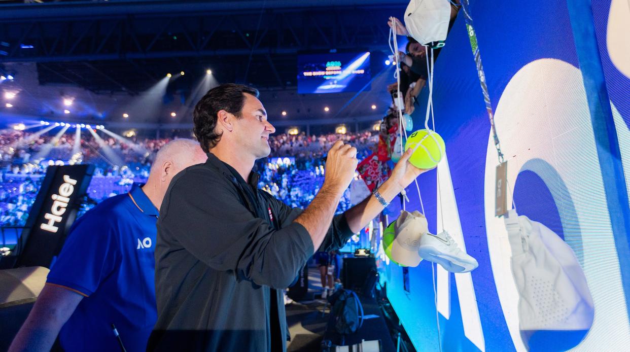 当地时间1月17日,退役瑞士网球名宿费德勒参加2026年澳大利亚网球公开赛开幕式表演赛。