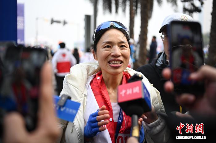图为张水华在赛后接受媒体采访。 中新社记者何蓬磊摄