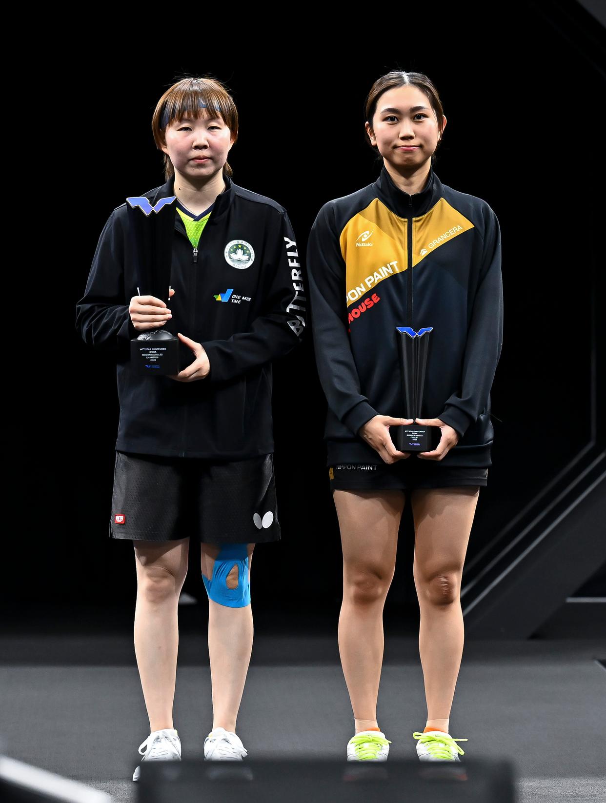 1月18日,朱雨玲(左)、佐藤瞳在颁奖仪式上。新华社发(尼库摄)