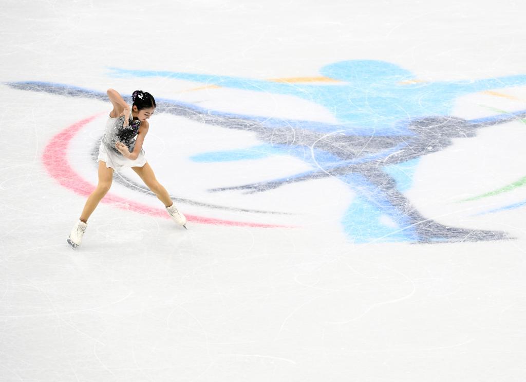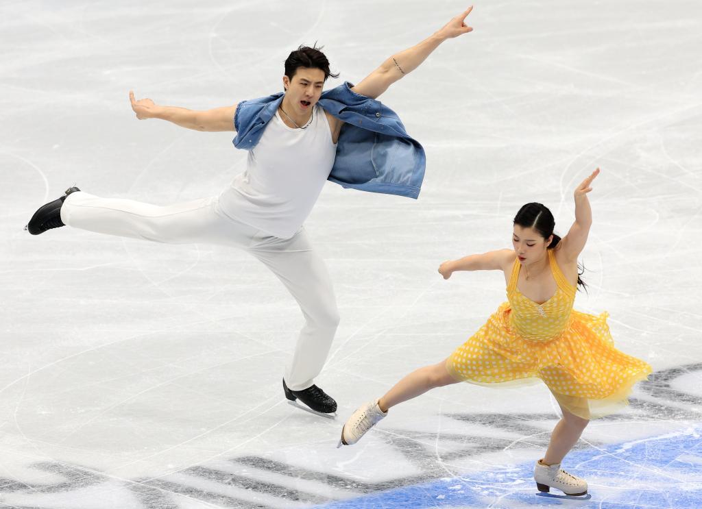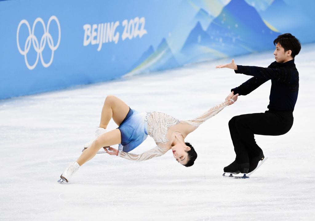 2022年2月19日,中国选手隋文静(左)/韩聪在北京冬奥会花样滑冰双人滑自由滑比赛中