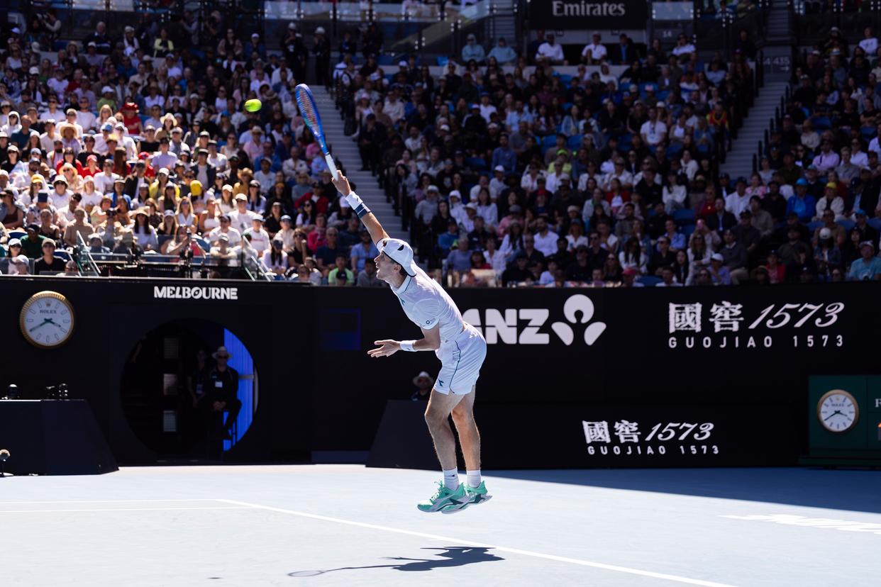 当地时间1月22日,在墨尔本进行的2026年澳大利亚网球公开赛男单第二轮比赛中,塞尔维亚选手焦科维奇3比0战胜意大利选手马埃斯特雷利,晋级下一轮。