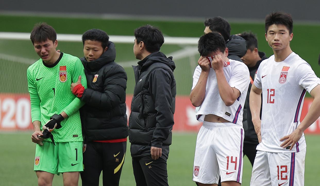 2023年3月12日,中国队球员在比赛后。当日,在乌兹别克斯坦塔什干举行的2023年U20男足亚洲杯四分之一决赛中,中国队以1:3不敌韩国队,无缘四强。新华社发(车周勇摄) 竞技体育以成败论英雄。安东尼奥被诟病战术“保守”,合同到期未获续约,随后远赴南美。他与中国足球的故事,似乎就此画上句号。