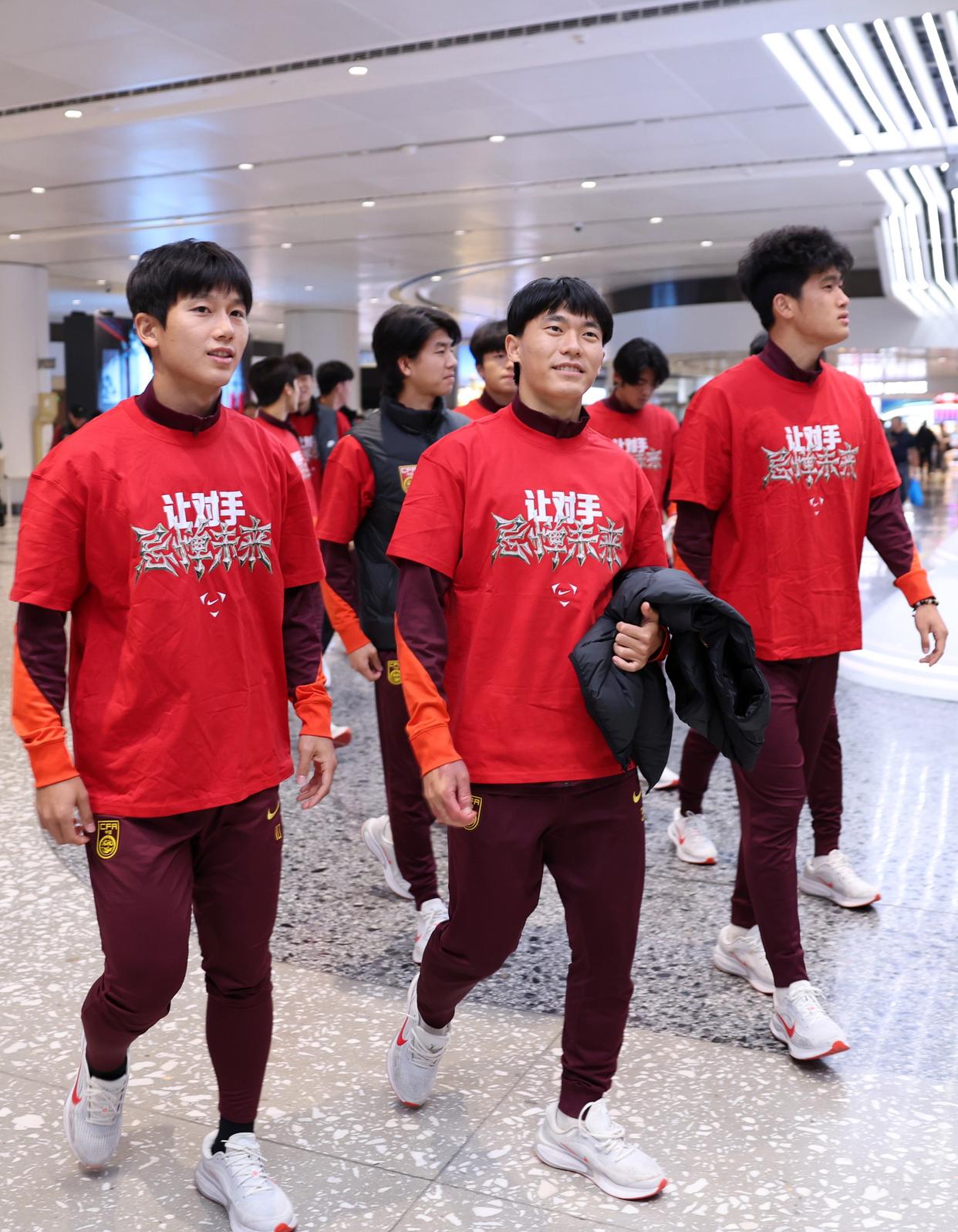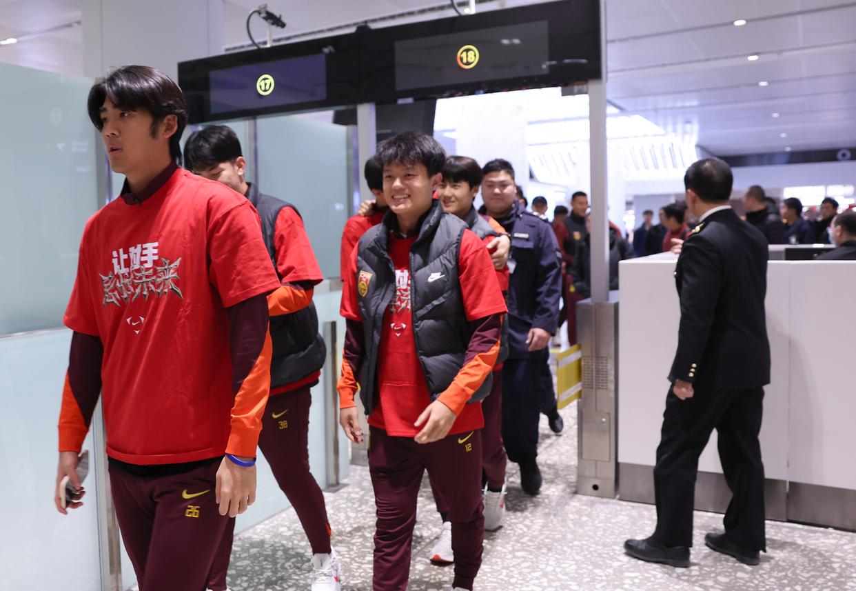 1月26日,U23男足球员抵达北京大兴国际机场。新华社记者 雒圆 摄