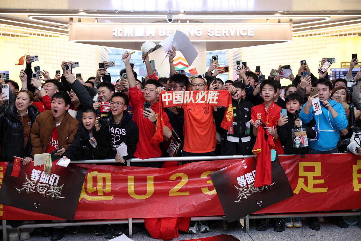 1月26日,在沙特阿拉伯夺得U23男足亚洲杯亚军的中国队抵达北京大兴国际机场。