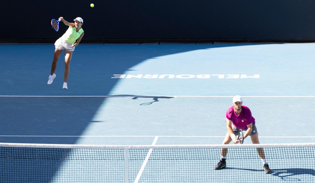 双打赛场,中国选手张帅搭档德国选手皮茨在混双第二轮不敌西尼亚科娃/费尔贝克,无缘八强;女双方面,郭涵煜与法国选手梅拉德诺维奇搭档,对阵澳大利亚外卡组合比雷尔/吉布森,郭涵煜在比赛中遭遇腰伤,尽管她坚持完赛,但最终两人还是以6:3、4:6、2:6告负。