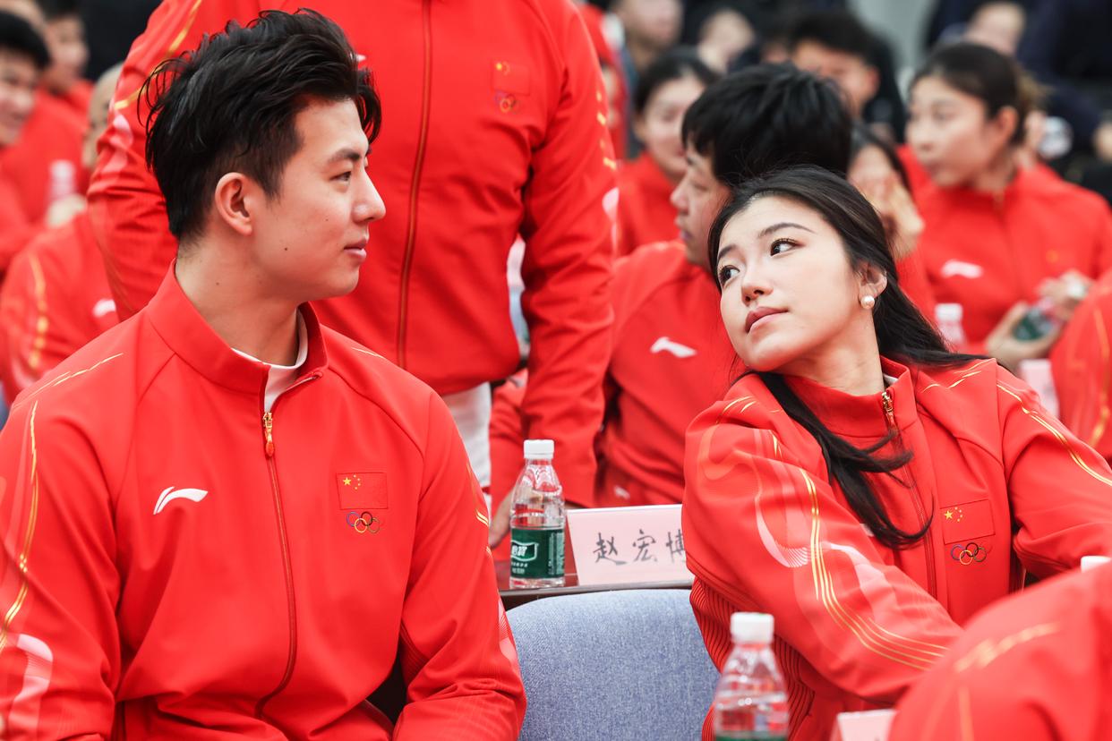 1月27日,花样滑冰运动员王诗玥、柳鑫宇(左)在大会后。新华社记者 那宇奇 摄