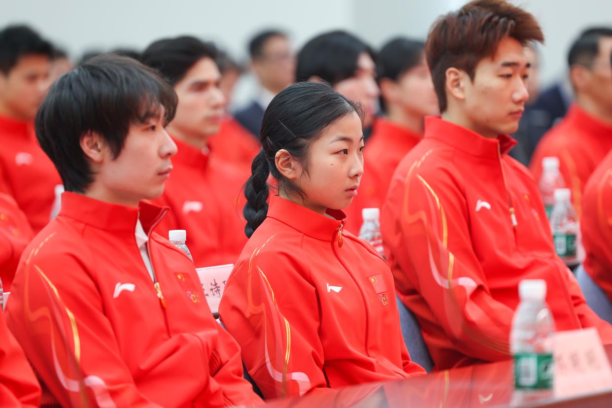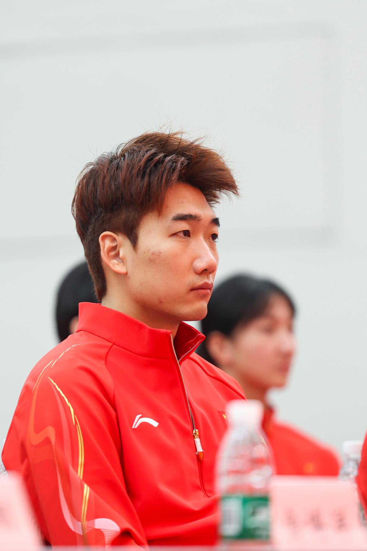 1月27日,短道速滑运动员范可新(左二)等在大会上。新华社记者 那宇奇 摄