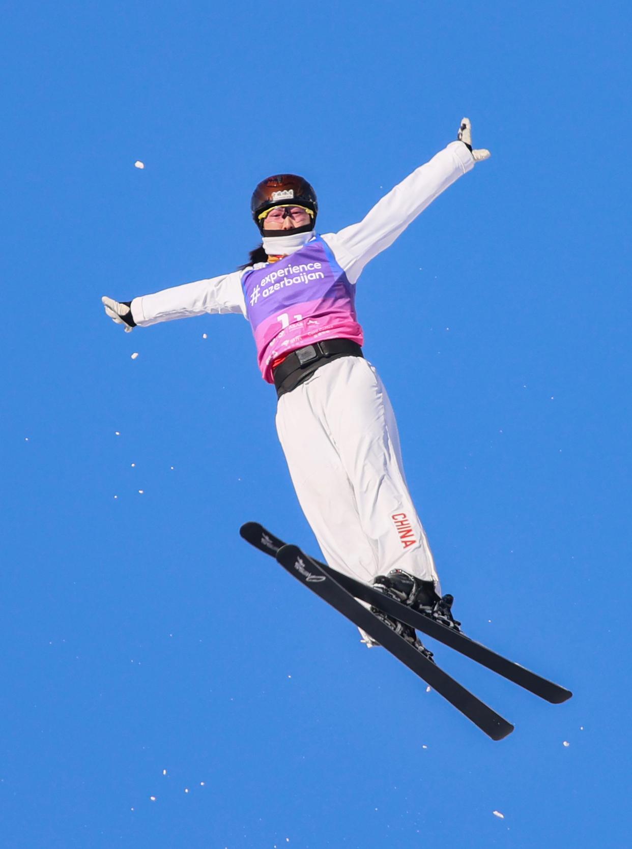 谷爱凌从U型场地边缘腾空