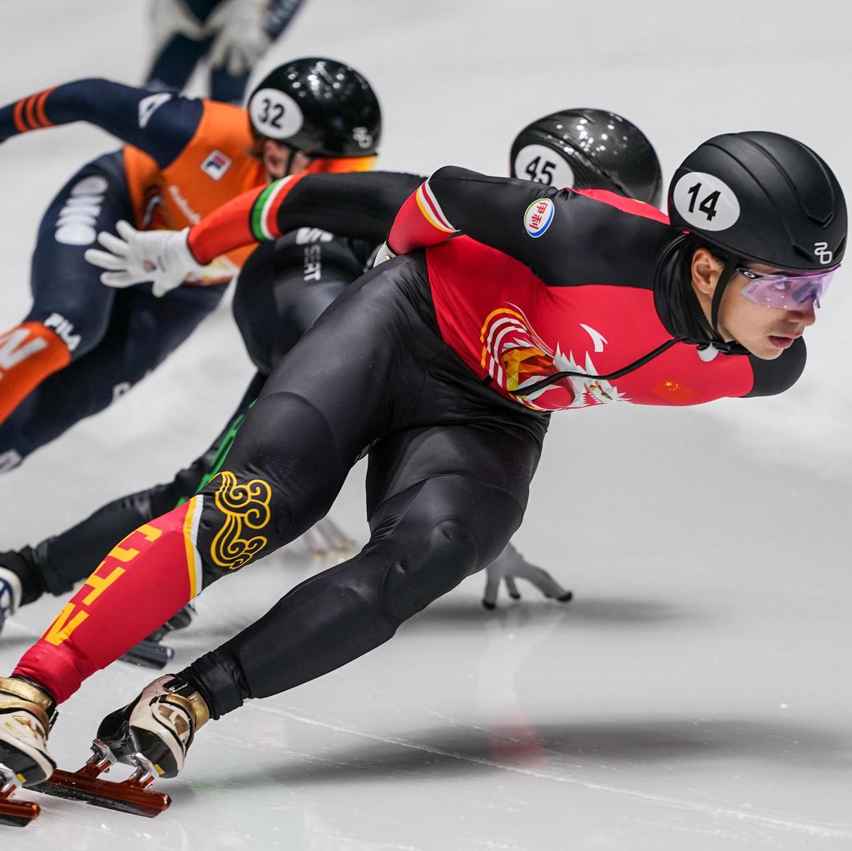 高亭宇在冰场上疾驰而过