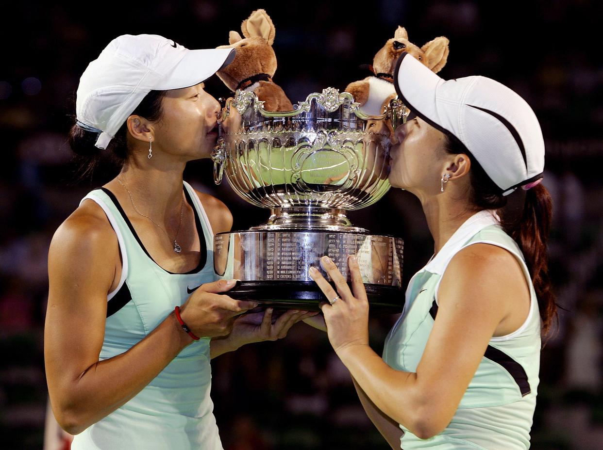 资料图:2006年1月27日,中国选手郑洁、晏紫获得澳大利亚网球公开赛女双冠军,为中国获得历史上第一个网球大满贯赛事冠军。 郑洁回忆,“抢七”最后那个高压球落地时,她和晏紫几乎同时扑向对方,紧紧拥抱,罗德·拉沃尔球场的欢呼声铺天盖地。“那种绝境中并肩作战的信念感,20年过去依然清晰。”她说。