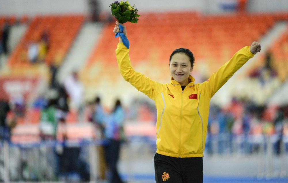 ↑2014年2月13日,张虹在索契冬奥会速度滑冰女子1000米比赛中夺冠。