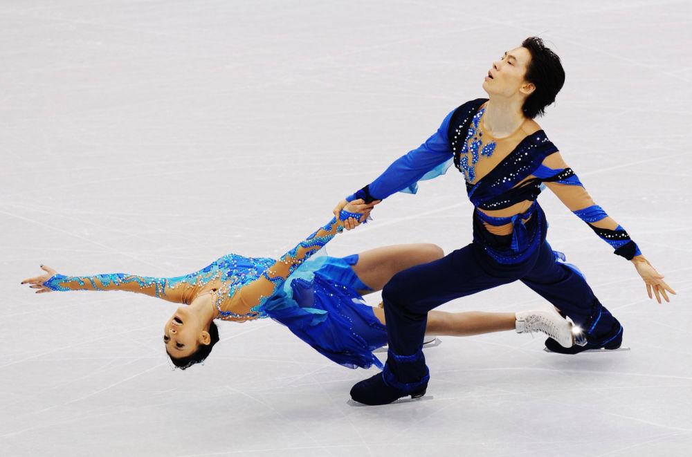 ↑2010年2月14日,庞清(左)/佟健在温哥华冬奥会花样滑冰双人滑短节目比赛中。最终,他们获得双人滑比赛亚军。