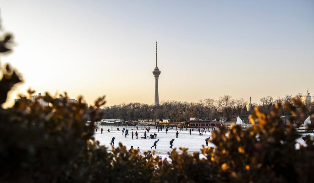 2021年1月30日,市民在北京玉渊潭公园一处冰场内滑冰。新华社记者李明摄