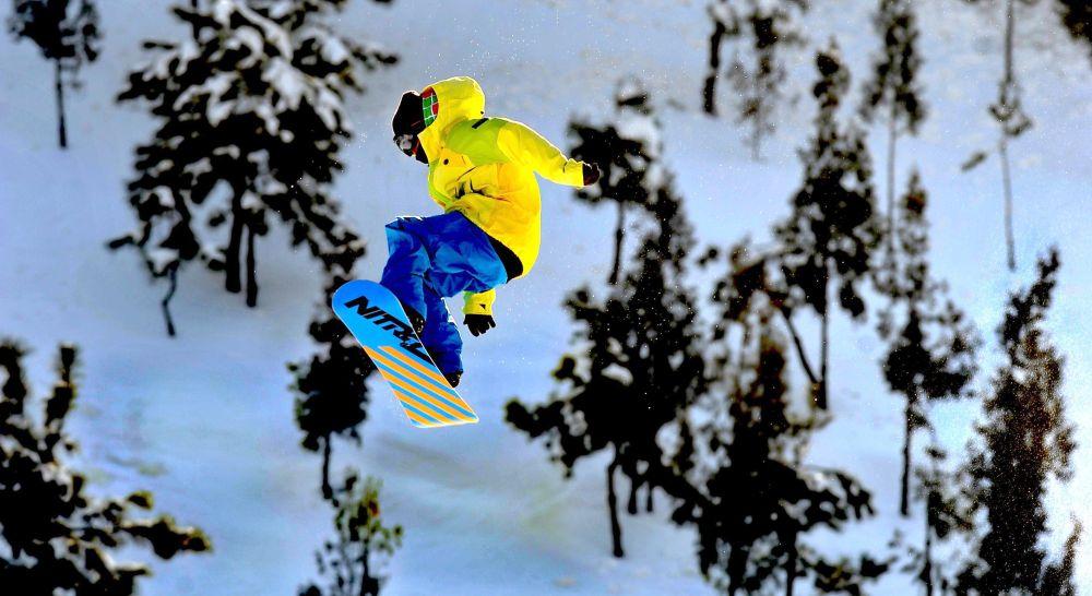 2022年11月19日,在吉林市万科松花湖度假区V-PARK地形公园,滑雪爱好者在跳台上练习。新华社记者许畅摄