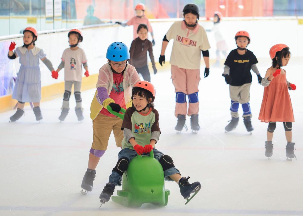 2025年7月13日,小朋友们在江苏南京一处室内滑冰场滑冰。新华社发(苏阳 摄)