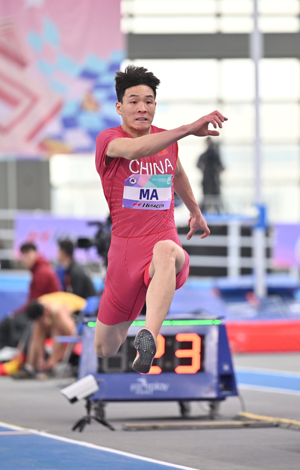 2月6日,在天津举行的第十二届亚洲室内田径锦标赛男子三级跳远决赛中,中国选手粟文、焦新评、马英龙分别获得冠、亚、季军。