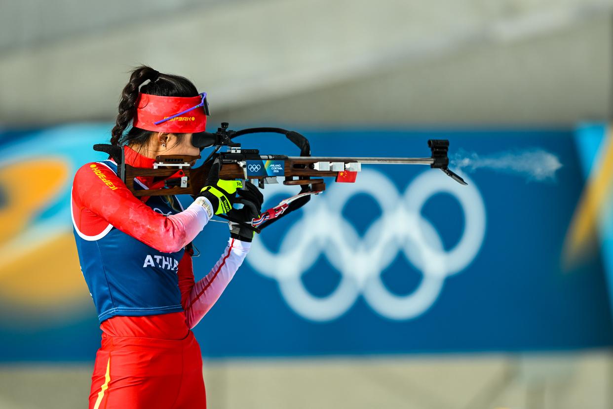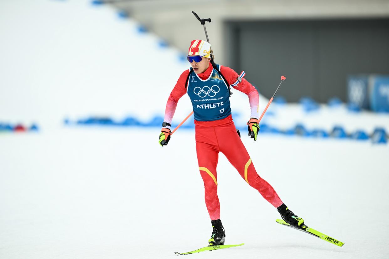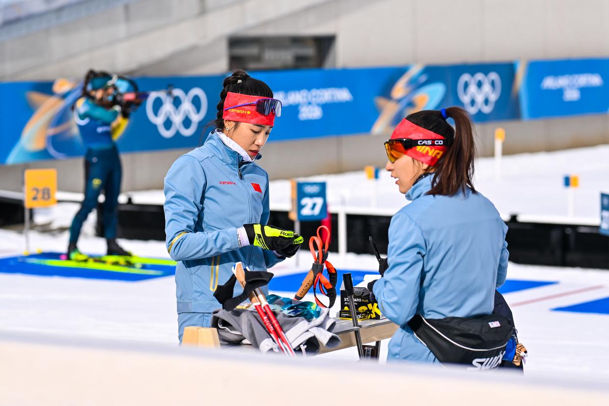 当地时间2月6日,中国冬季两项队在意大利安泰塞尔瓦冬季两项竞技场进行赛前训练,备战米兰-科尔蒂纳冬奥会冬季两项赛事。