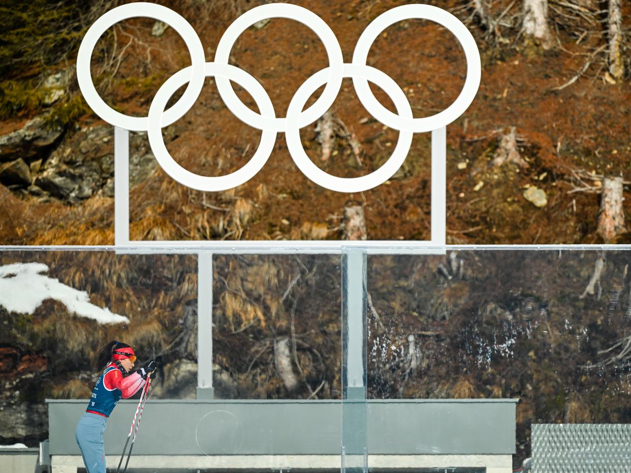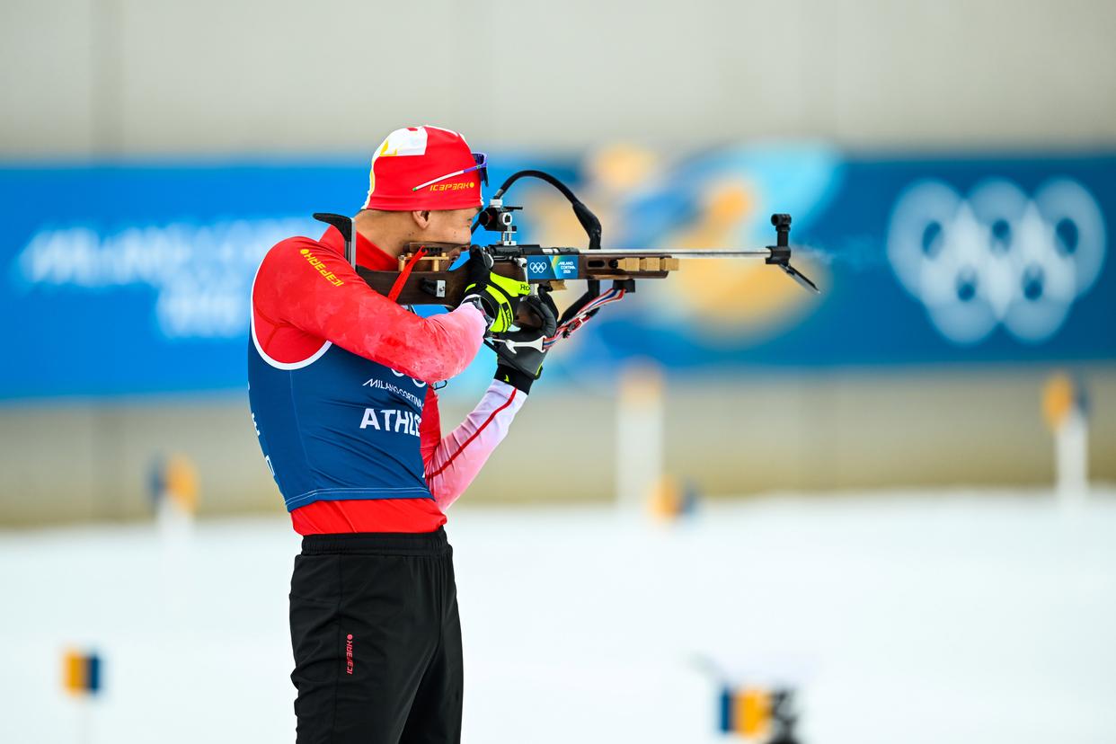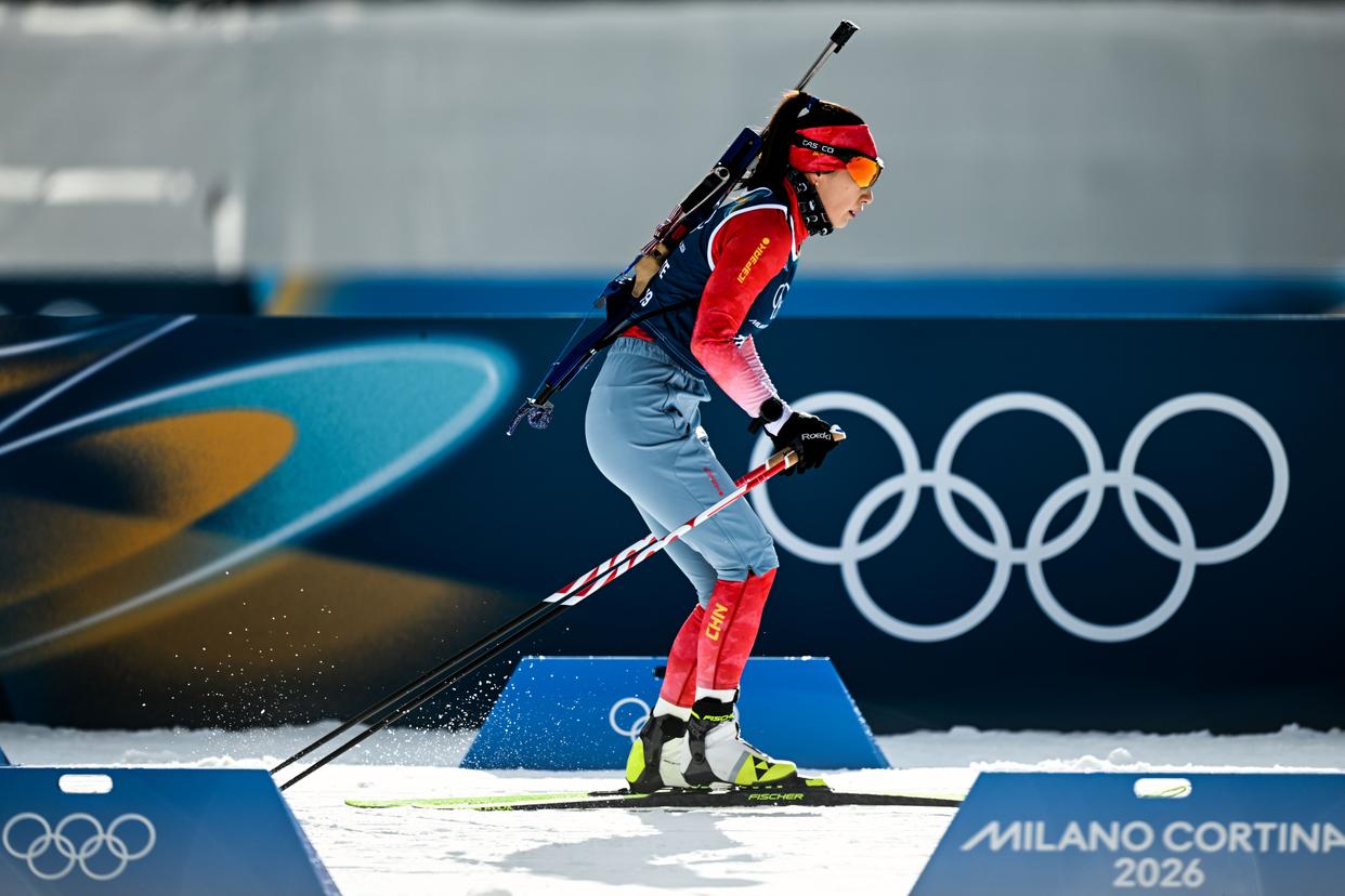 当地时间2月6日,中国冬季两项队在意大利安泰塞尔瓦冬季两项竞技场进行赛前训练,备战米兰-科尔蒂纳冬奥会冬季两项赛事。