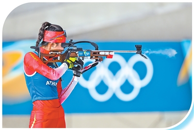 当地时间2月6日,中国冬季两项队选手褚源蒙在赛前训练。