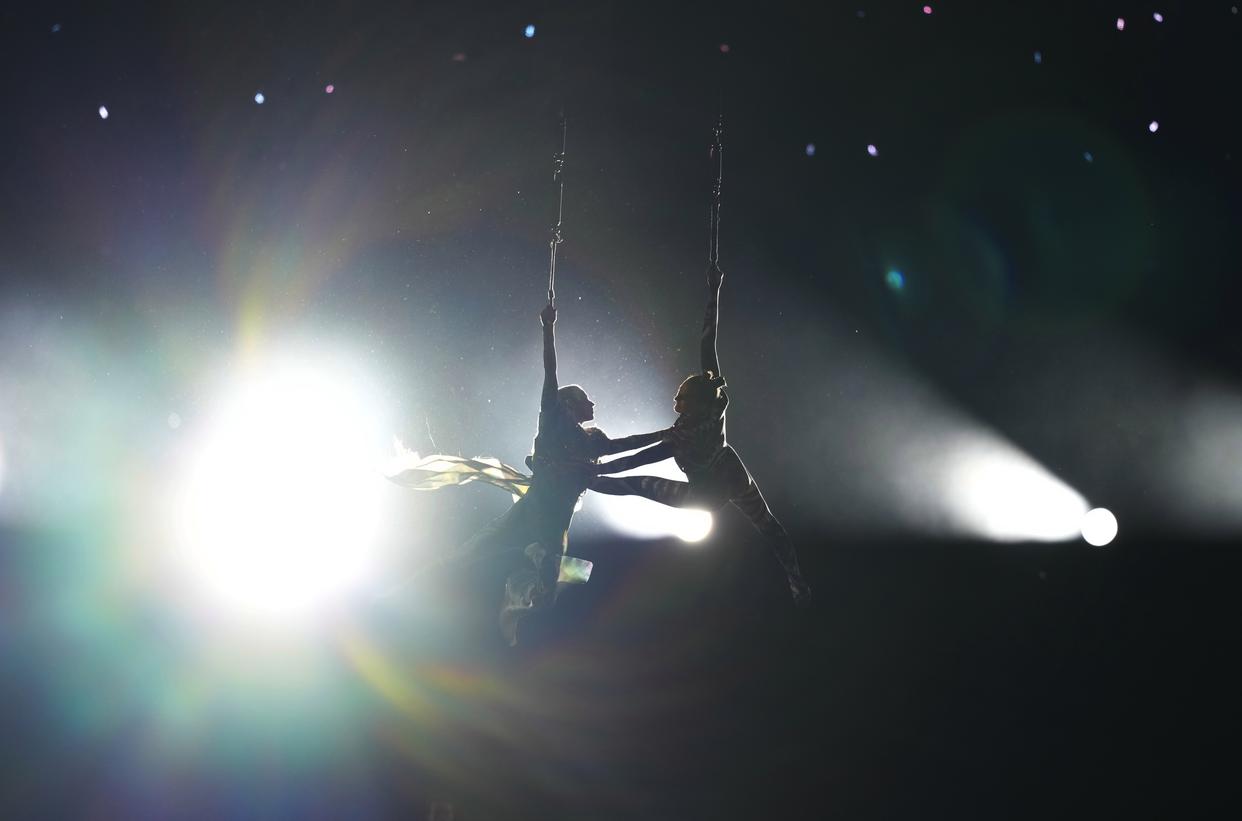 2月6日,演员在开幕式现场表演。 当地时间2月6日,2026年米兰-科尔蒂纳冬奥会开幕式在意大利米兰圣西罗体育场举行。 新华社记者 杜潇逸 摄