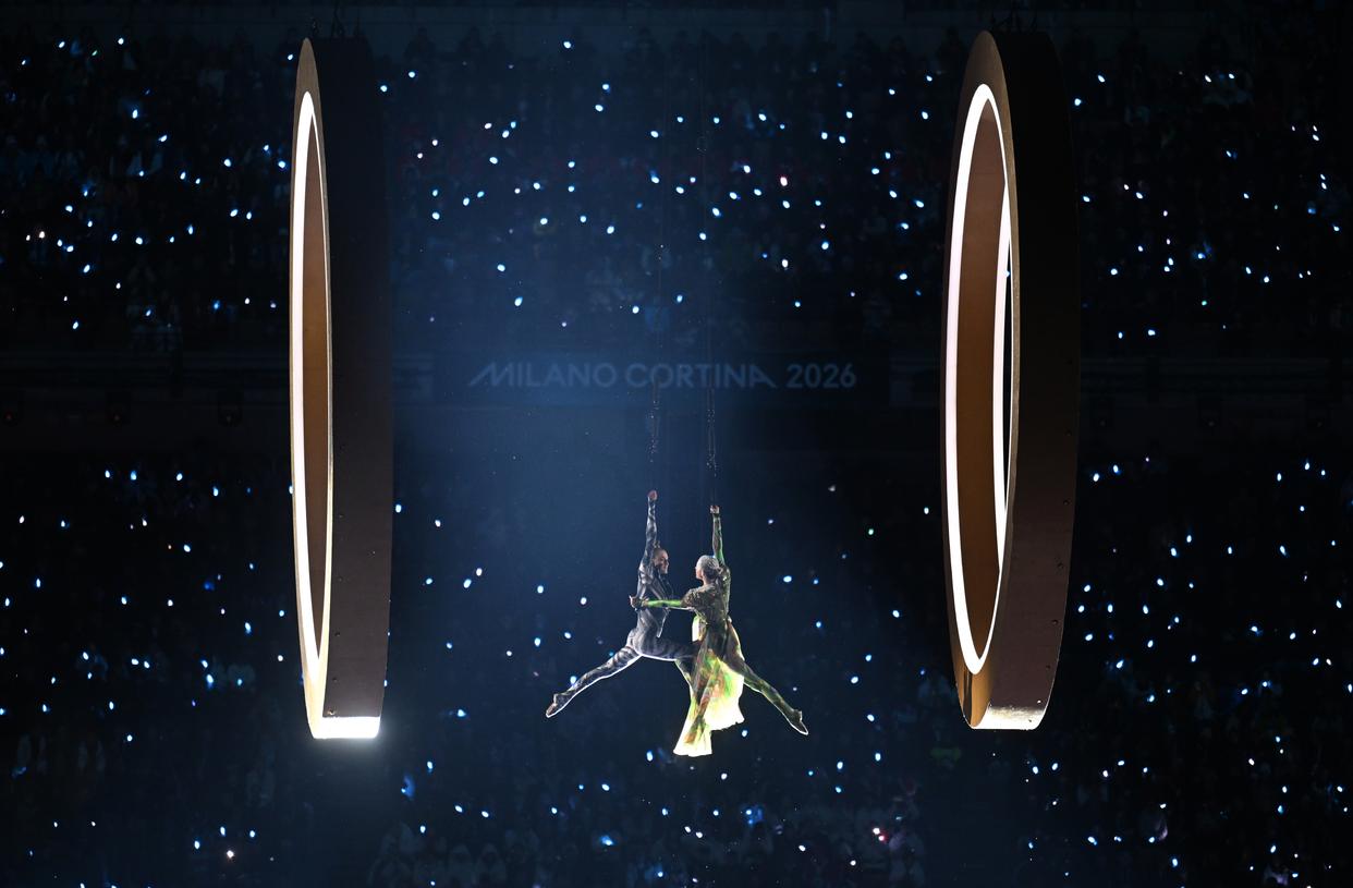 2月6日,演员在开幕式现场表演。 当地时间2月6日,2026年米兰-科尔蒂纳冬奥会开幕式在意大利米兰圣西罗体育场举行。 新华社记者 赖向东 摄