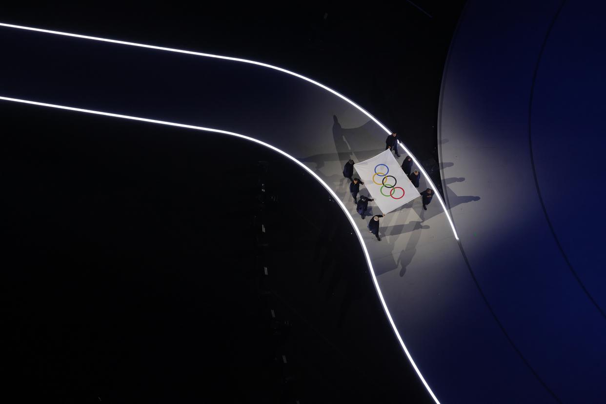 2月6日,奥林匹克会旗在开幕式上入场。 当地时间2月6日,2026年米兰-科尔蒂纳冬奥会开幕式在意大利米兰圣西罗体育场举行。 新华社记者 陈益宸 摄