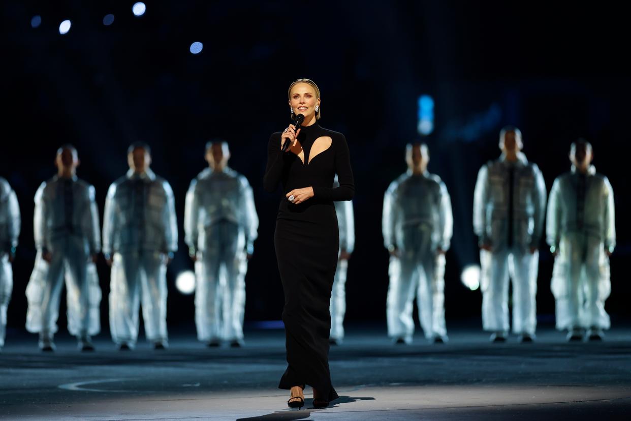 2月6日,演员查理兹·塞隆在开幕式上。 当地时间2月6日,2026年米兰-科尔蒂纳冬奥会开幕式在意大利米兰圣西罗体育场举行。 新华社记者 李明 摄
