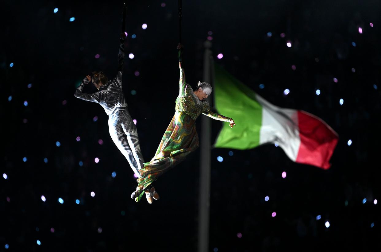 2月6日,演员在开幕式现场表演。 当地时间2月6日,2026年米兰-科尔蒂纳冬奥会开幕式在意大利米兰圣西罗体育场举行。 新华社记者 陈益宸 摄