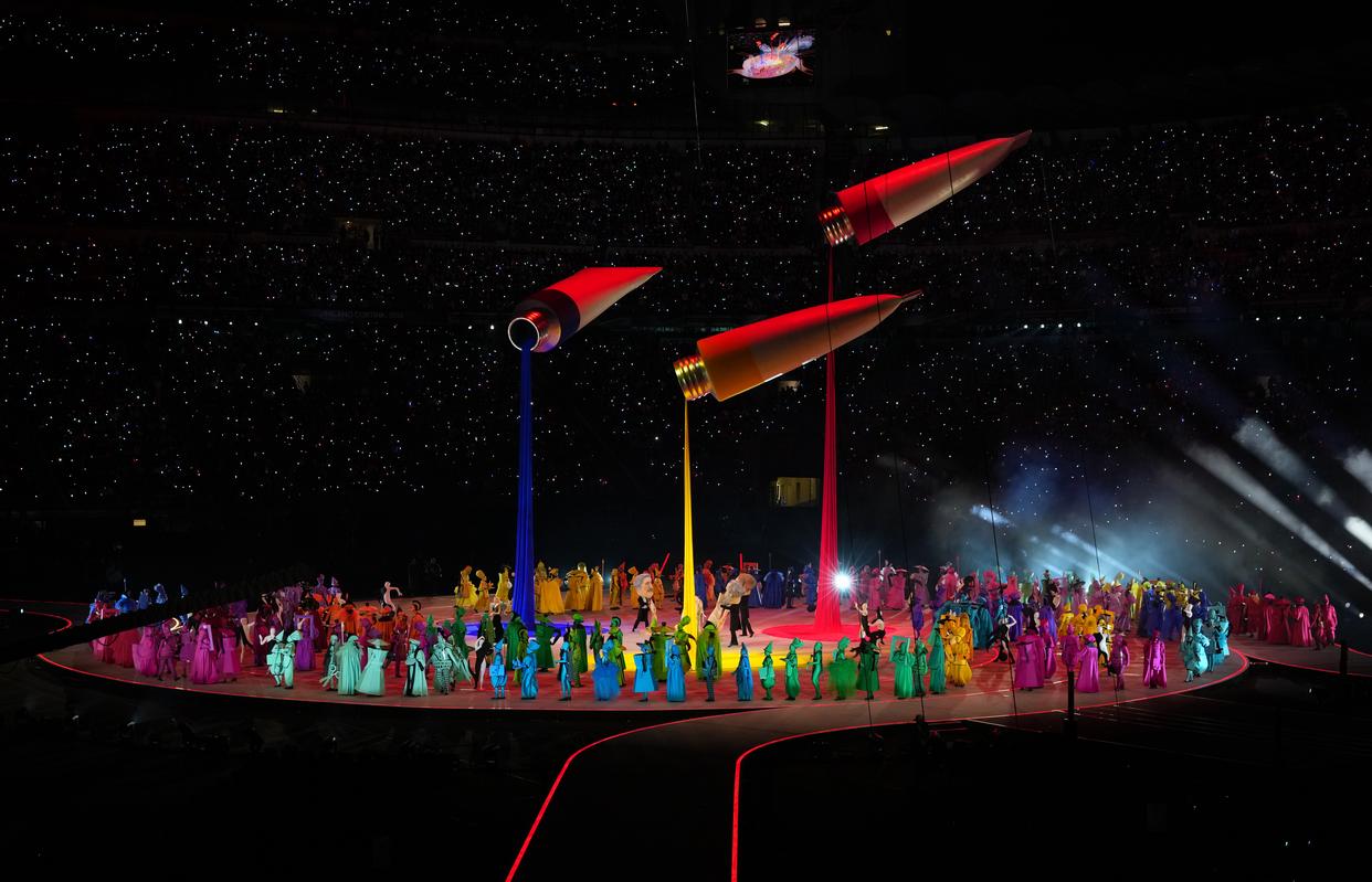 2月6日,演员在开幕式现场表演。 当地时间2月6日,2026年米兰-科尔蒂纳冬奥会开幕式在意大利米兰圣西罗体育场举行。 新华社记者 薛宇舸 摄