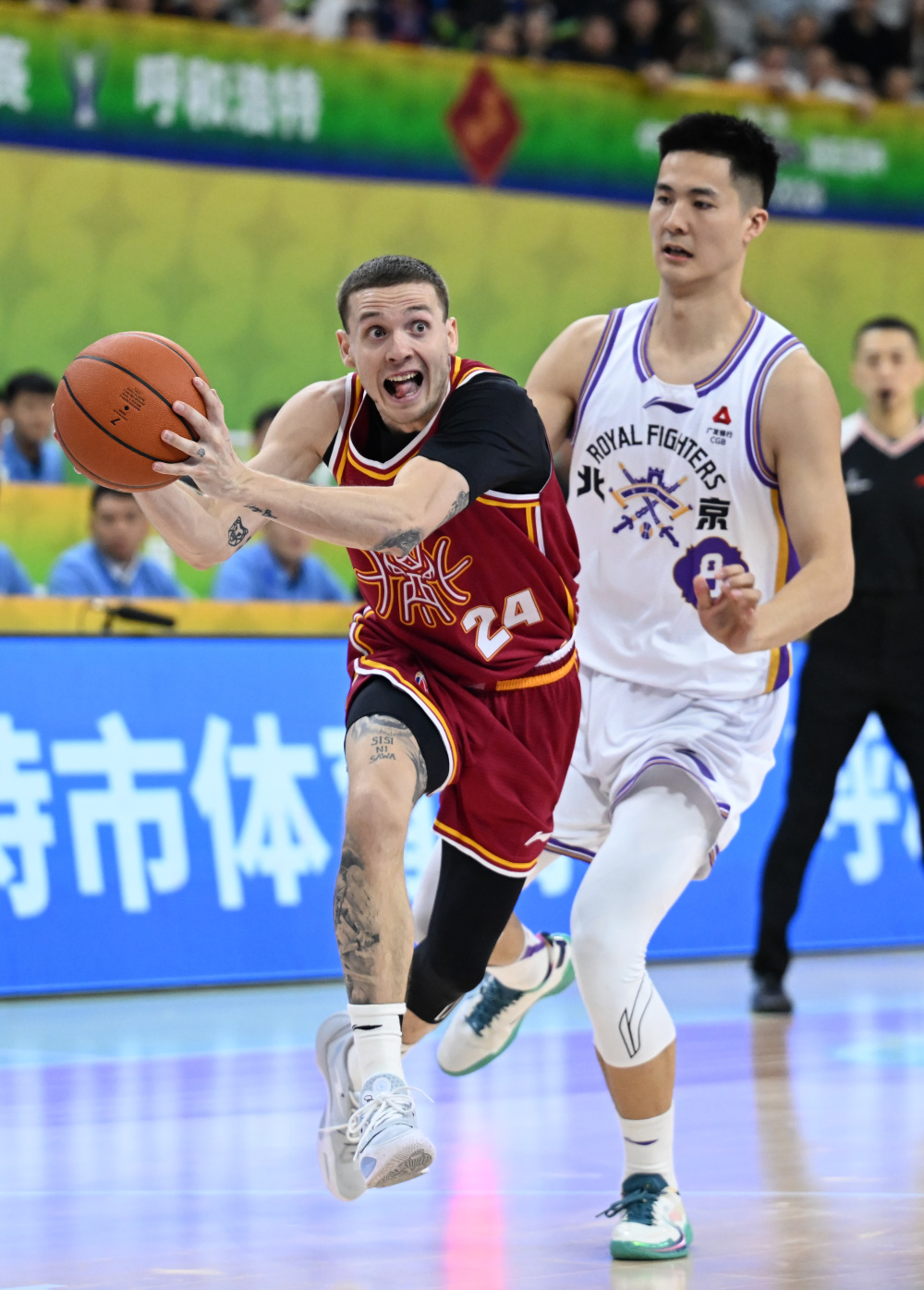 2月7日,山西汾酒队球员葛昭宝在比赛中投篮。新华社记者 贝赫 摄