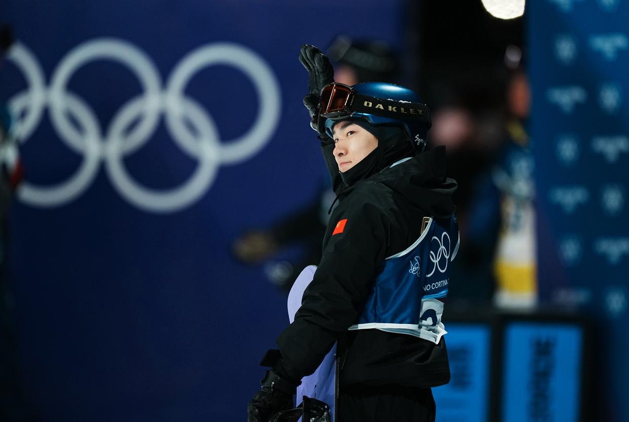 2月7日,中国选手苏翊鸣在比赛中。新华社记者 胡超 摄