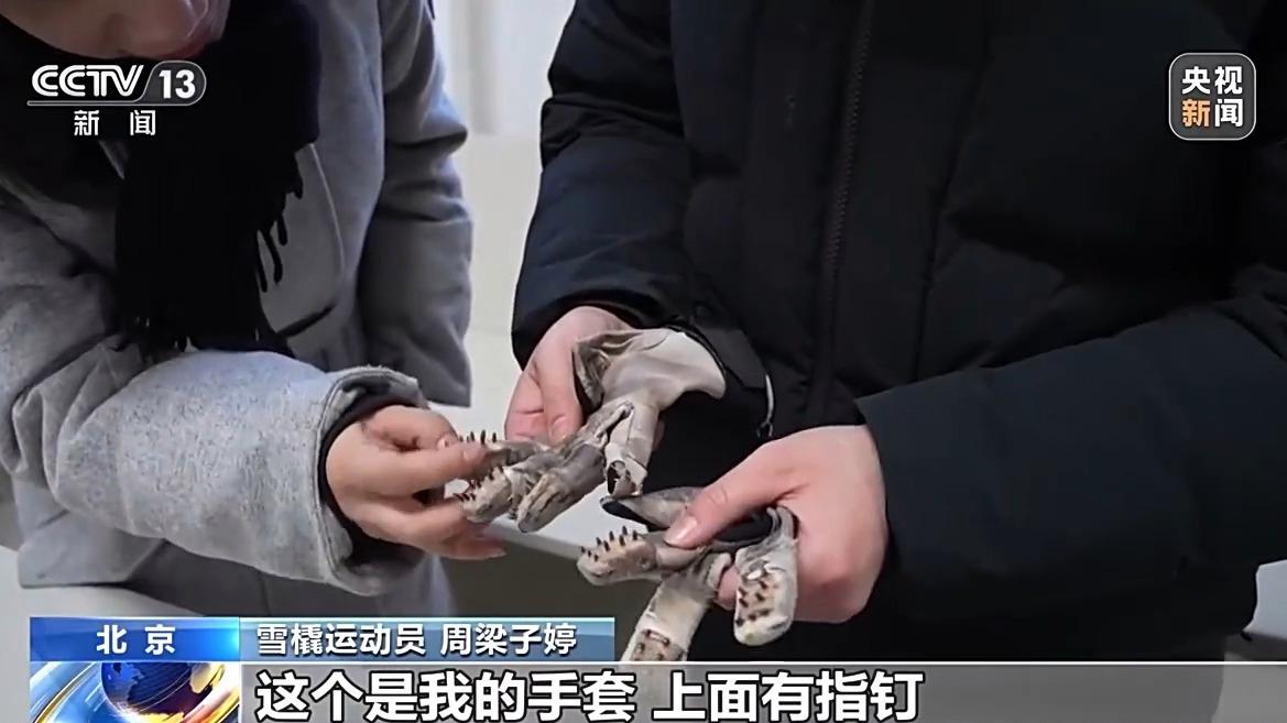 手套上面有指钉,是为了扒冰能获得更快的初始速度。根据每条赛道留的出发坡的长度,决定扒冰次数。初始速度越快,后边的滑行速度就越快。