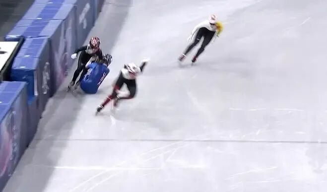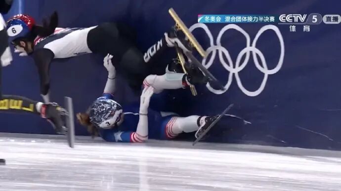 比赛中,韩国队和美国队遭遇碰撞,美国队选手在弯道处摔倒,撞倒韩国队选手,韩国队最终获得小组第三、美国队获得小组第四,均无缘A组决赛。