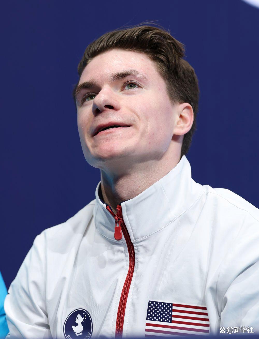 2月10日,美国选手瑙莫夫在男单短节目比赛后。新华社记者 李明 摄