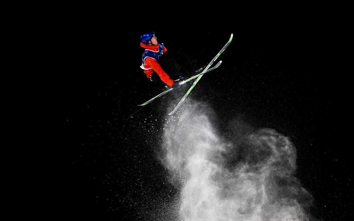 2月15日,挪威选手乌尔里克在比赛中。他晋级决赛。 当地时间2月15日,米兰-科尔蒂纳冬奥会自由式滑雪男子大跳台预赛在意大利利维尼奥举行。 新华社记者 张宏祥 摄