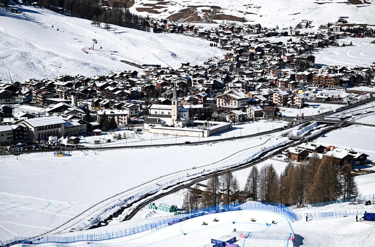 这是2月15日拍摄的比赛现场。 当地时间2月15日,米兰-科尔蒂纳冬奥会单板滑雪项目障碍追逐混合团体比赛在意大利利维尼奥举行。 新华社记者 夏一方 摄
