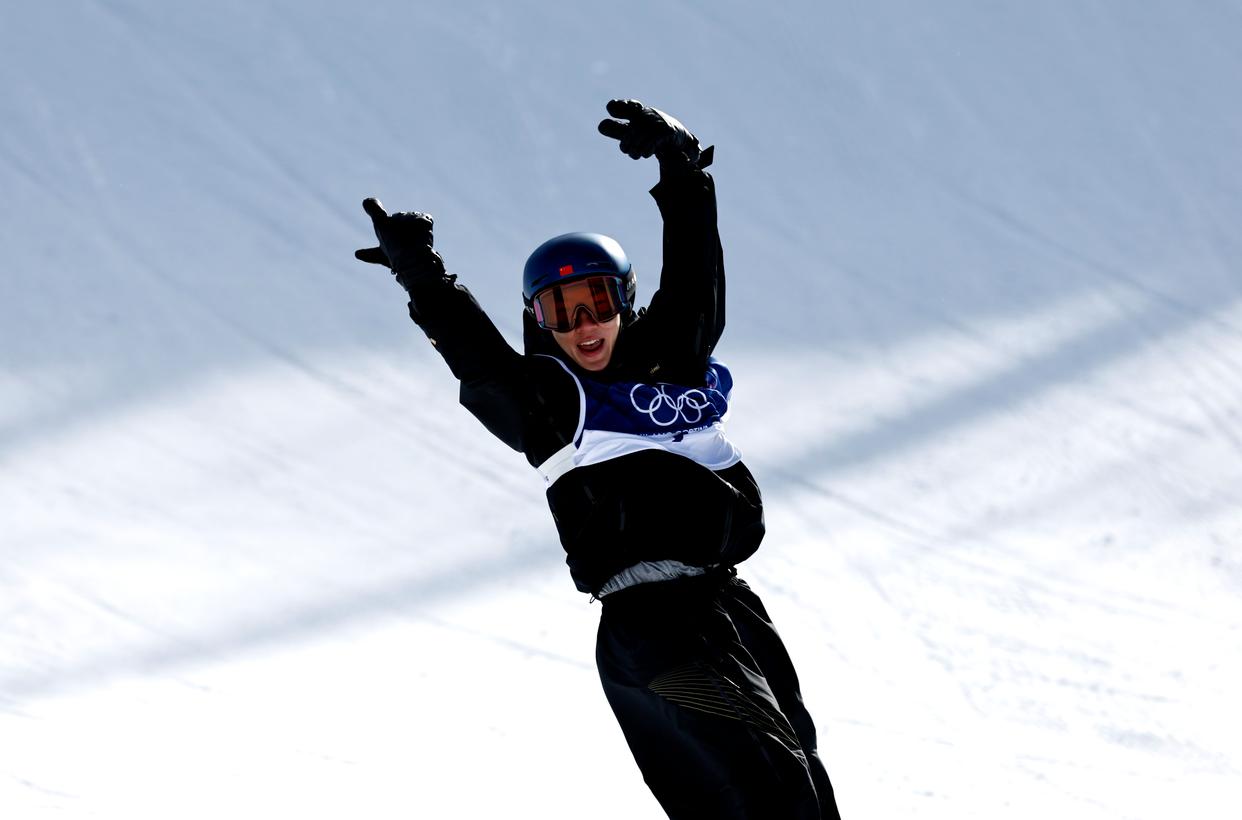 2月15日,中国选手苏翊鸣在比赛后。 当地时间2月15日,米兰-科尔蒂纳冬奥会单板滑雪男子坡面障碍技巧资格赛在意大利利维尼奥举行。 新华社记者 王鹏 摄