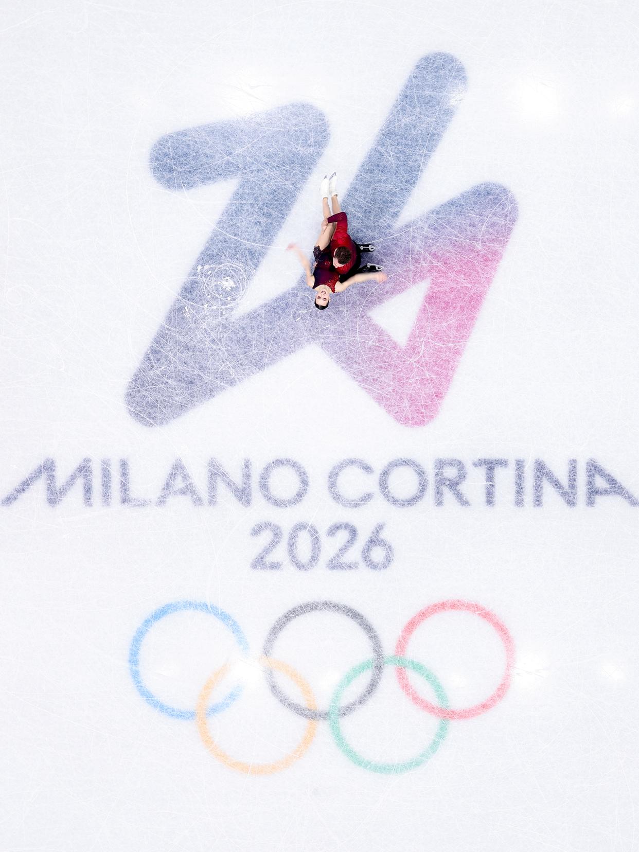 2月15日,加拿大组合佩雷拉/米肖(上)在比赛中。 当地时间2月15日,米兰-科尔蒂纳冬奥会花样滑冰项目双人滑短节目比赛在意大利米兰举行。 新华社记者 陈益宸 摄