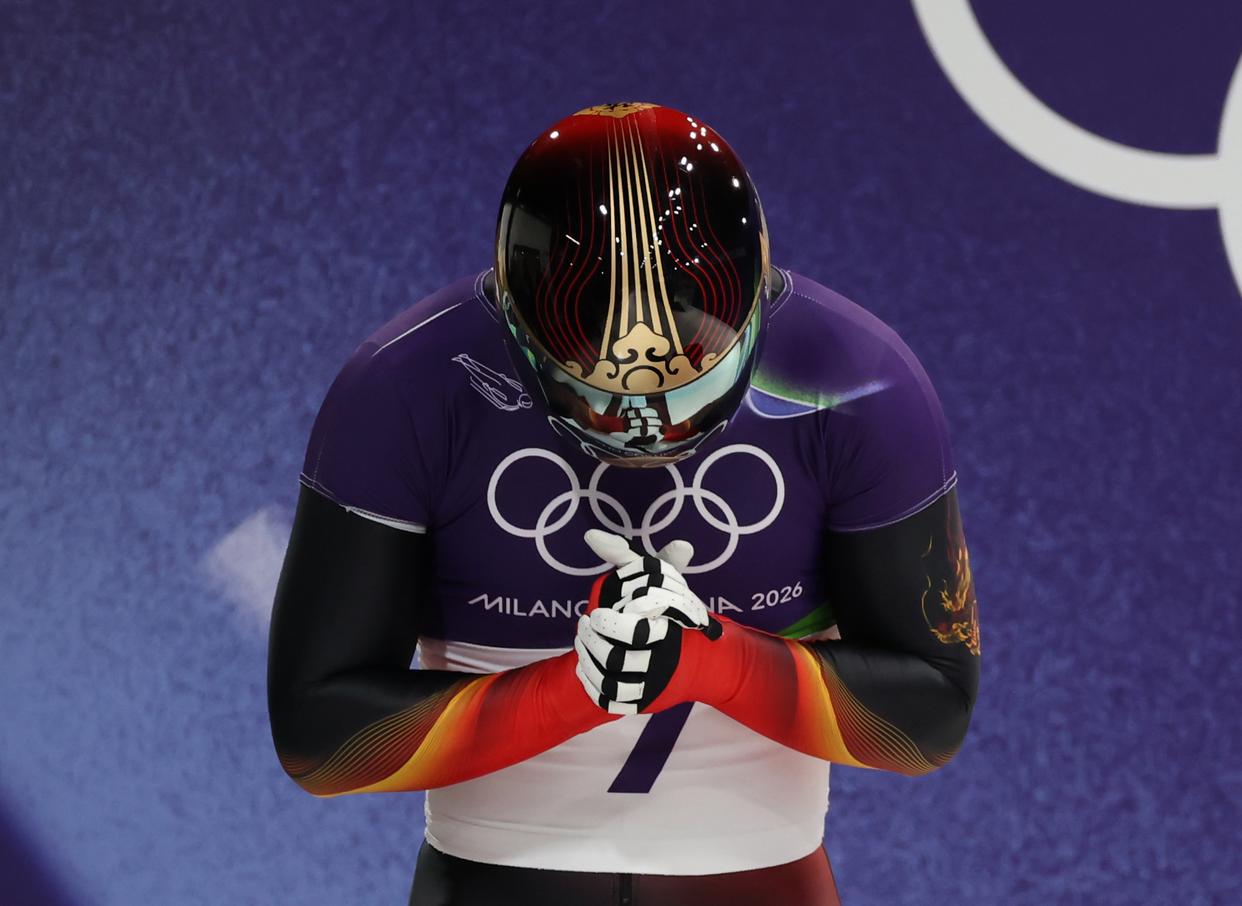 2026年2月13日,中国选手陈文浩在钢架雪车项目男子组第三轮比赛前。