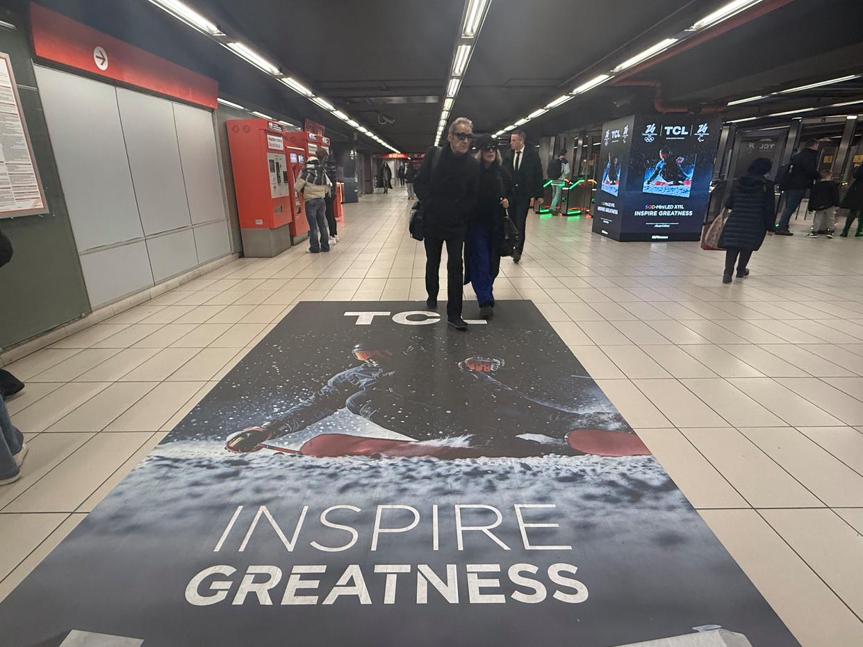 这是2026年2月13日在意大利米兰的地铁站中拍摄的TCL的广告。(手机图片)冬奥会与中国农历新年