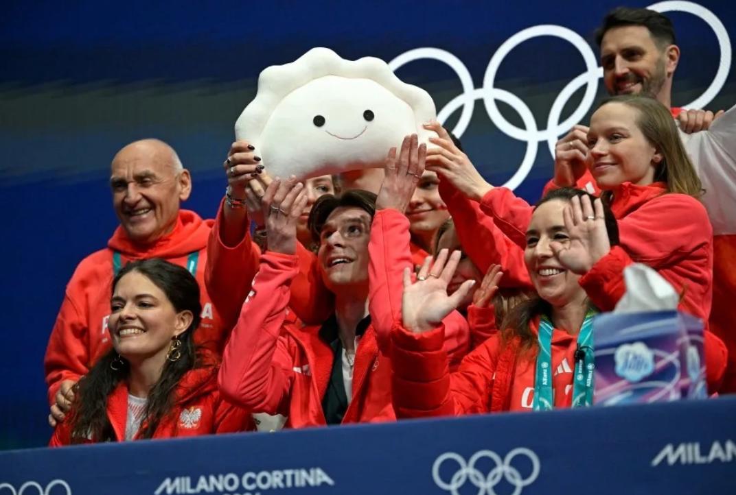 据参考消息网报道,正在意大利举行的2026冬奥会上,一只带着笑脸的波兰饺子抱枕意外“出圈”。波兰花样滑冰队员在等待成绩的时候紧紧抱着它,它软萌的样子瞬间征服了全世界的观众,一些人评价道:“看到它简直心都要化了。”