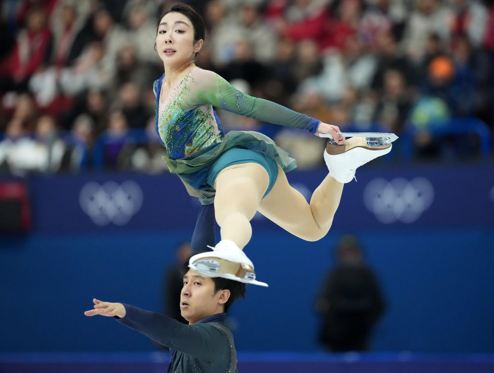 2月16日,中国选手隋文静(上)/韩聪在双人滑自由滑比赛中。新华社记者薛宇舸摄