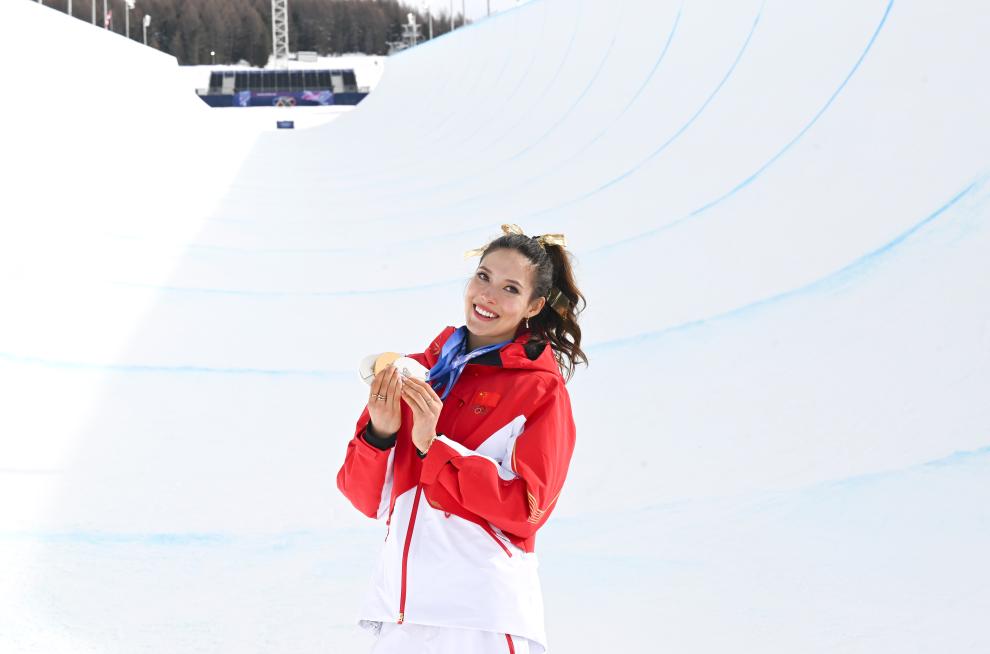 最后的考验出现在U型场地技巧决赛。比赛因大雪推迟一天。首轮,她在第一个900度转体落地时出现失误,仅得30分。作为卫冕冠军,她没有退路。第二轮,她完成一套干净、稳定的动作,将分数推高到94分,一举确定领先优势;第三轮分数再度刷新,以94.75分锁定金牌。