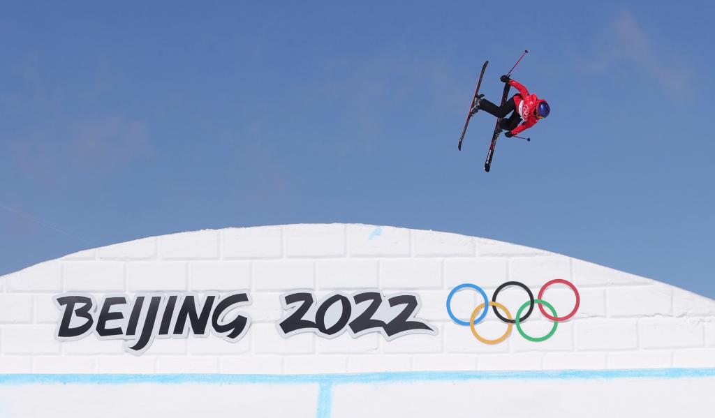 2022年2月14日,中国选手谷爱凌在比赛中。当日,北京2022年冬奥会自由式滑雪女子坡面障碍技巧资格赛在张家口云顶滑雪公园举行。新华社记者 吴壮 摄